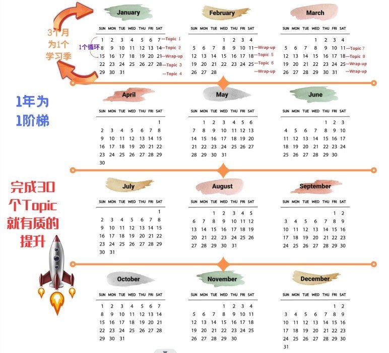 1年为一个阶梯—完成30个Topics就有质的提升。